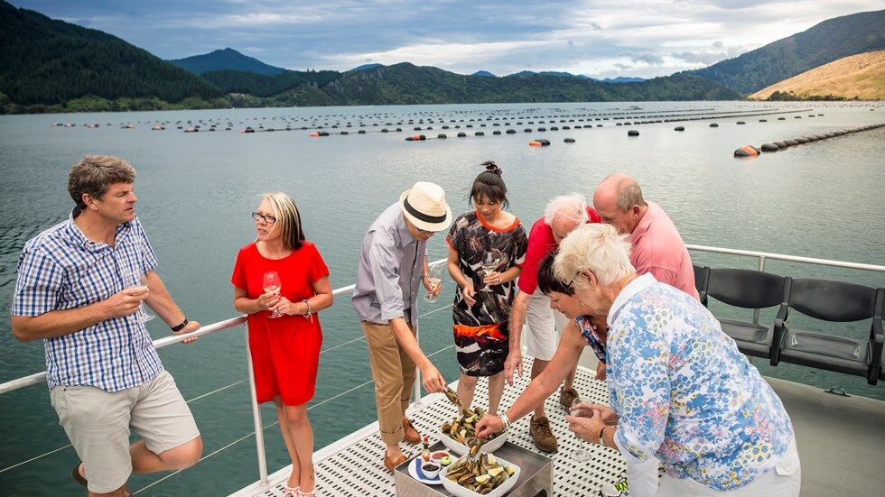 Sail out of Havelock Marina to enjoy the natural beauty of the Marlborough Sounds with a relaxing Greenshell Mussel Cruise, featuring freshly steamed mussels paired with a glass of Marlborough Sauvignon Blanc for the ultimate wine/food match.