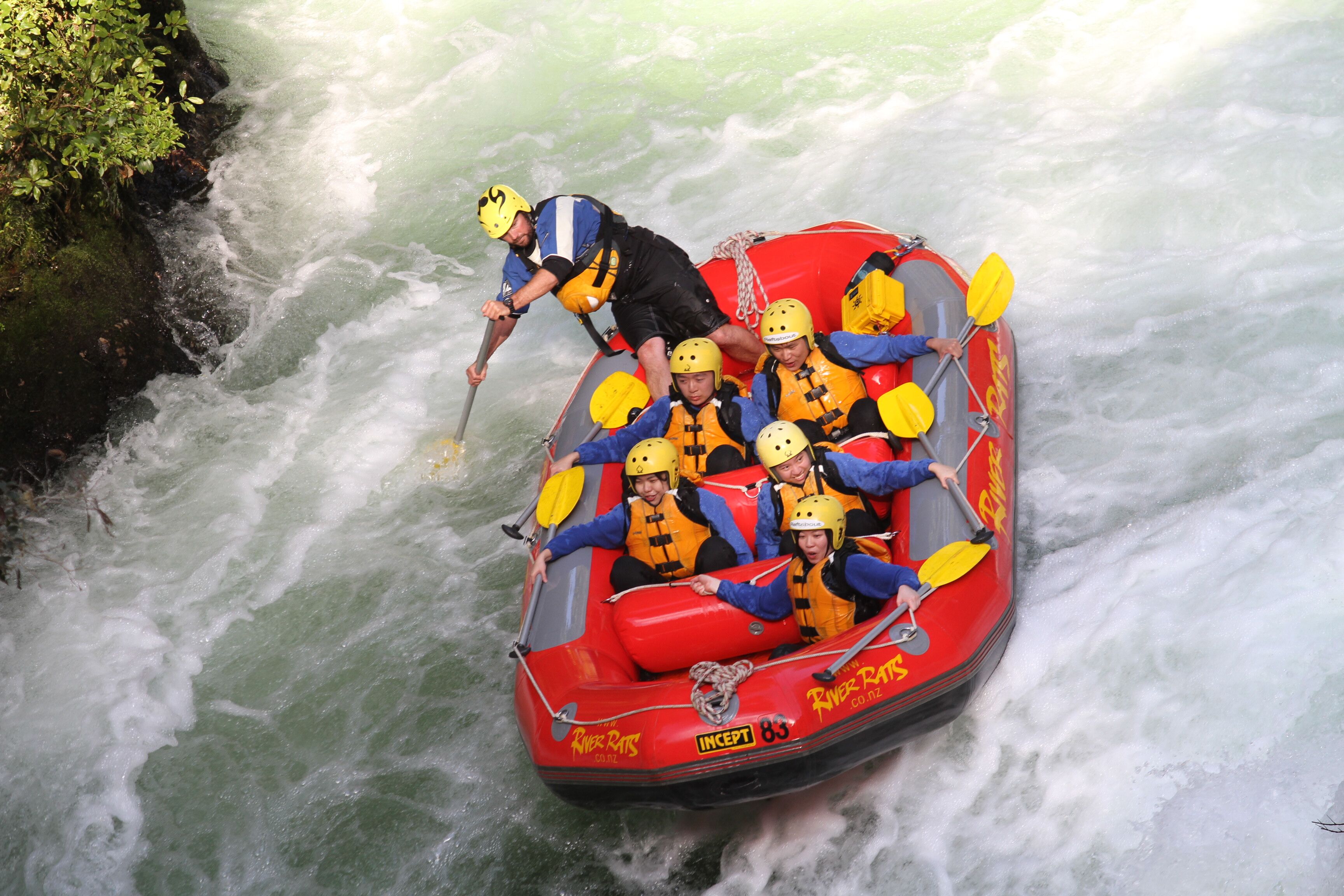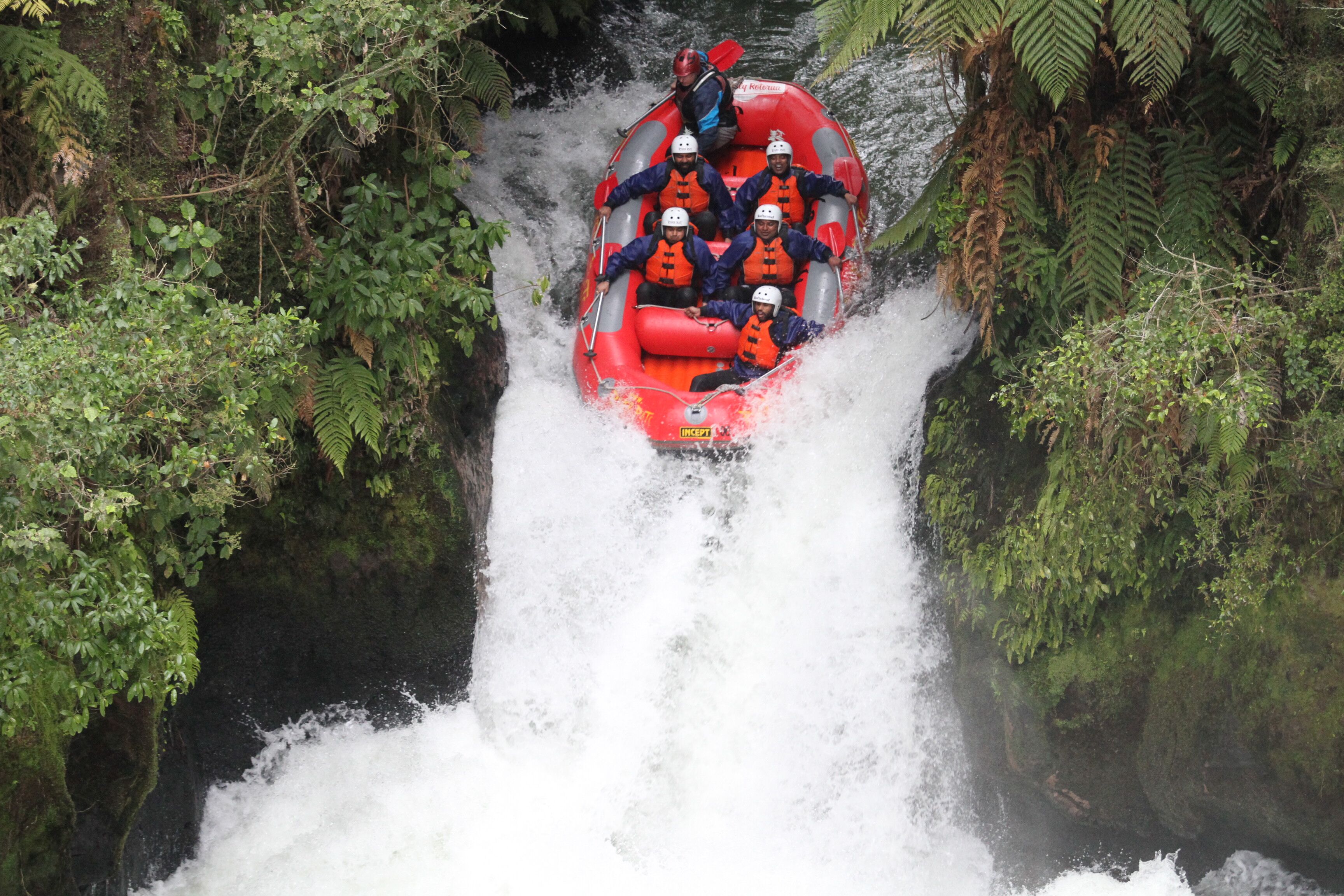 After meeting your guide, getting ready in wetsuits and life jackets you are off for an adventure down the beautiful Kaituna river gorge, with 3 rushing waterfalls, 14 rapids rapids and beautiful streches of gorge enclosed flatwater, this is a world class rafting adventure. Its reputed to have the worlds highest commercially rated water fall – the Tutea Falls at a full 7 metre drop. Time on the river is about 1.5 hours but allow 3 hours from check in, preparation and transfers to the river.