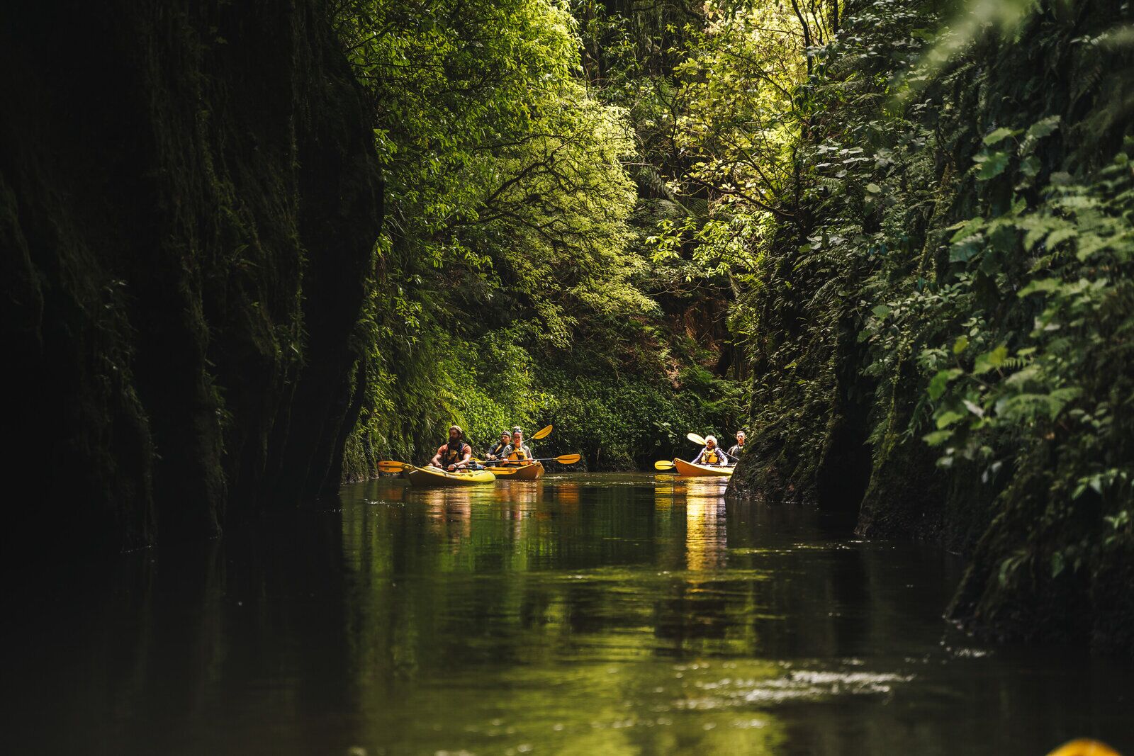 Starting late afternoon or early evening, enjoy spectacular sights you can only experience by kayak. Paddle slowly through the Pokaiwhenua canyon and, when darkness falls, be guided by titiwai (NZ glow worms) on either side.