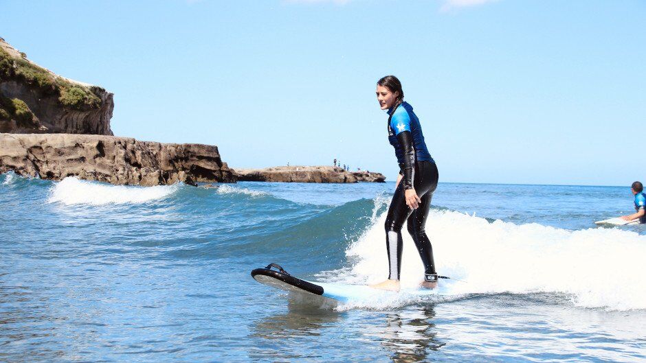 Get ready to hit the waves on Auckland’s beautiful West Coast at Muriwai Beach. This popular black sand beach is great place for surfing and after a group lesson your qualified professional instructor will have you surfing like a pro. You’ll be in a fun and safe environment with the crew from Muriwai Surf School – perfect for the whole family.