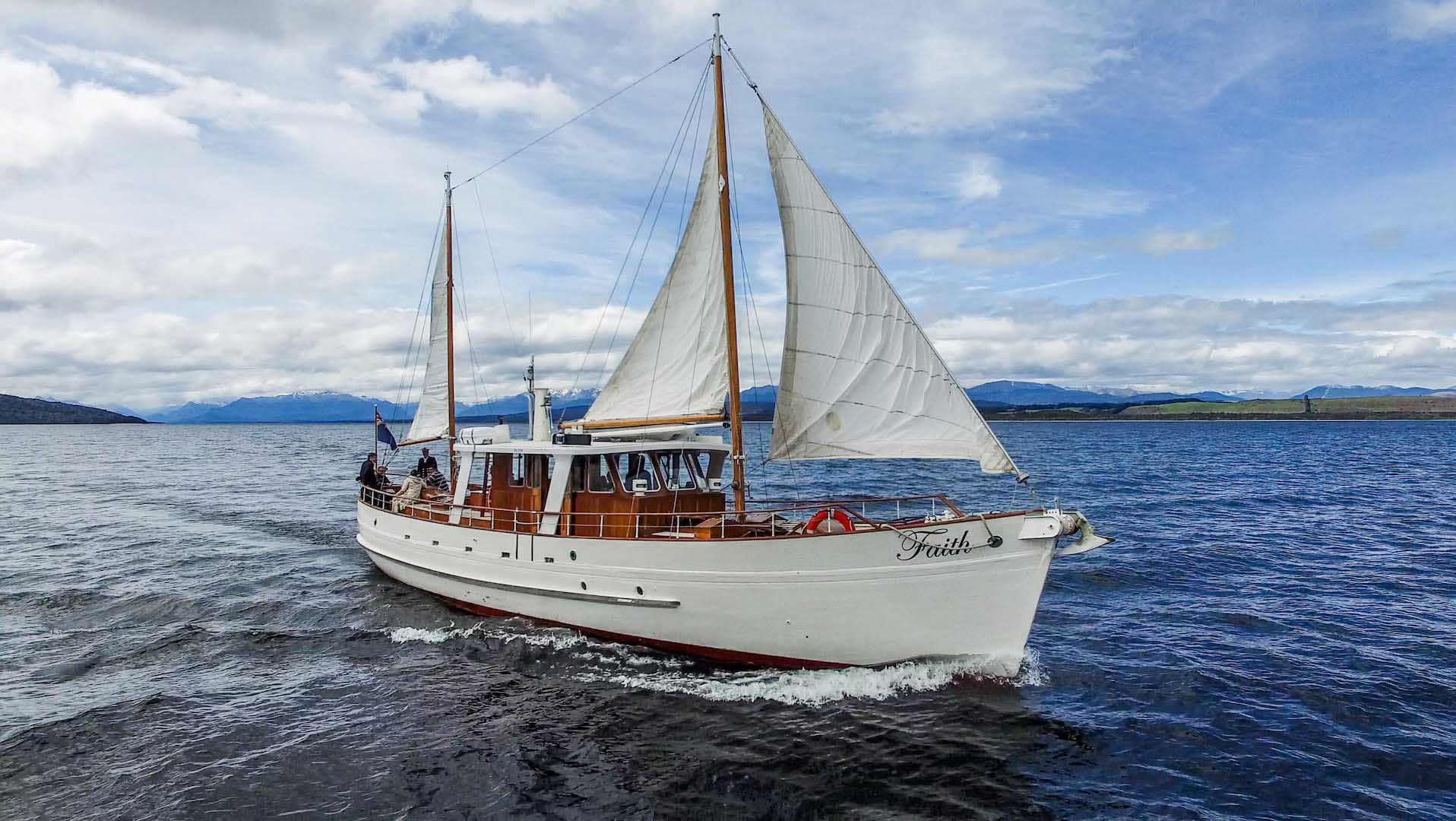 Enjoy drinks and canapés as the sun dips behind Fiordland’s majestic peaks, and the crew share the captivating story of how Faith’s journey started in a Scottish boatyard way back in 1935.