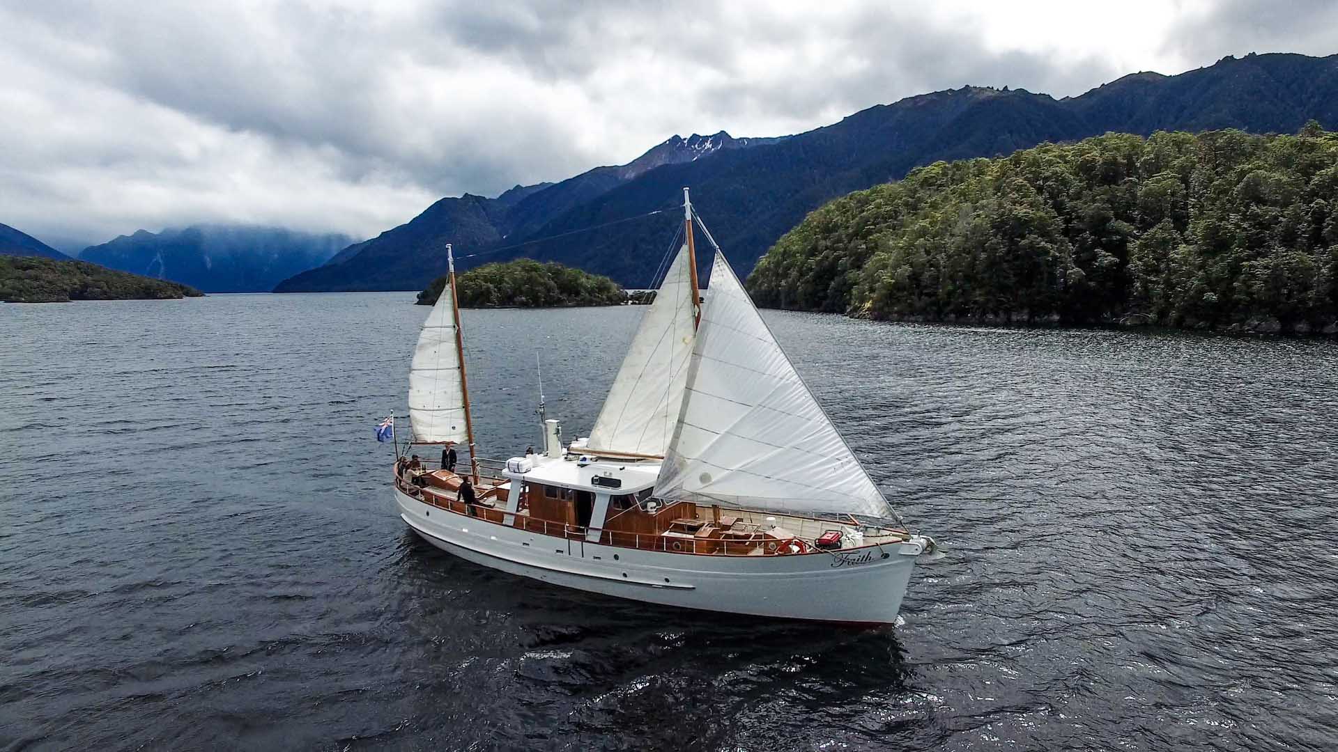 Faith is a 19.7 metre (64.6 foot), wooden motor-sailer, built in 1935 in Scotland. She served in WW2, hosted Sir Winston Churchill, has sailed all over the world and now calls Lake Te Anau and Fiordland National Park her home. There’s no other boat like her in New Zealand and no better way to experience the tranquility of this famous World Heritage Area.
