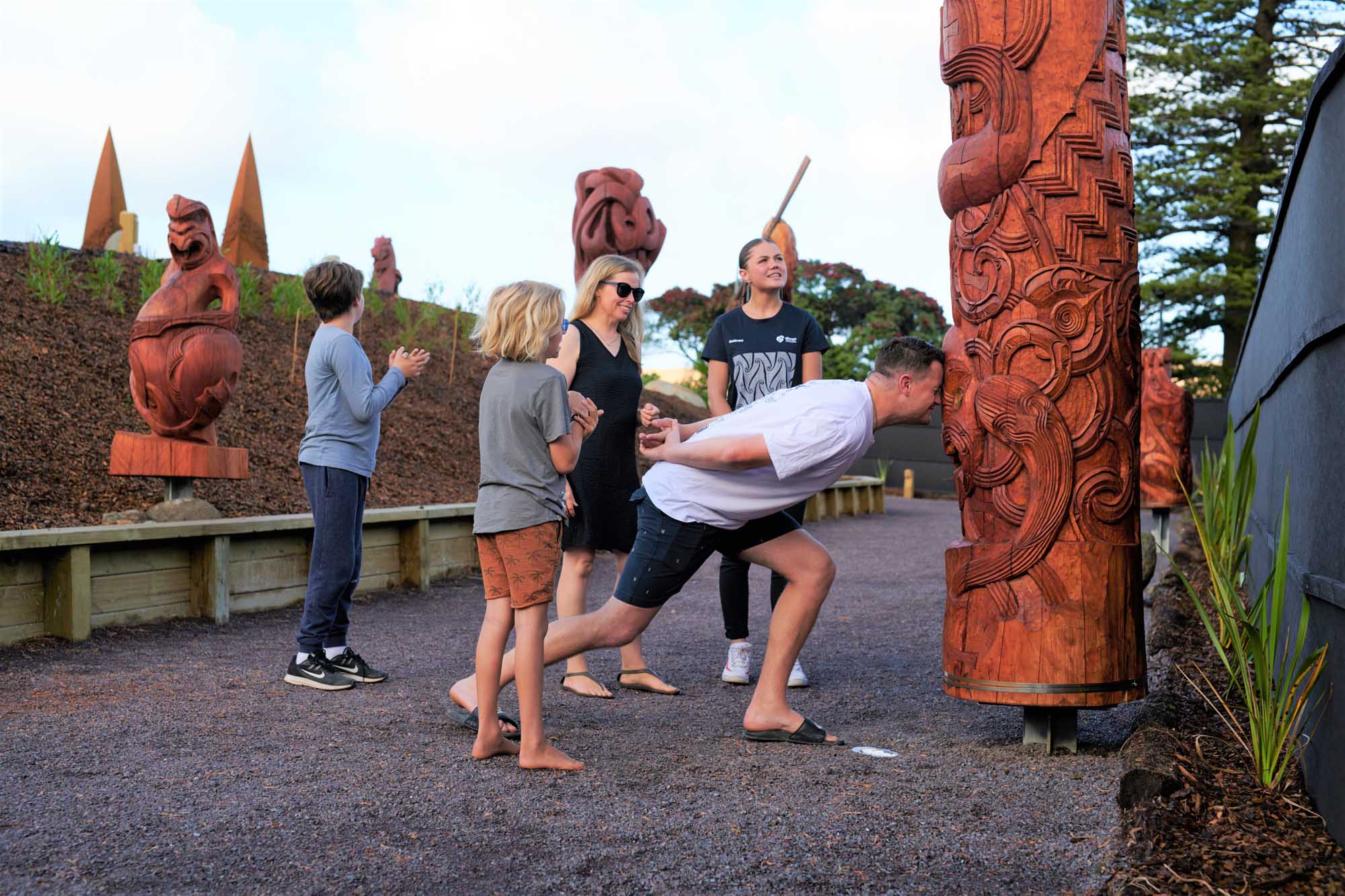 On your arrival at the Manea whare taonga (house of treasures), you are welcomed with the timeless cultural ceremony of pōwhiri.