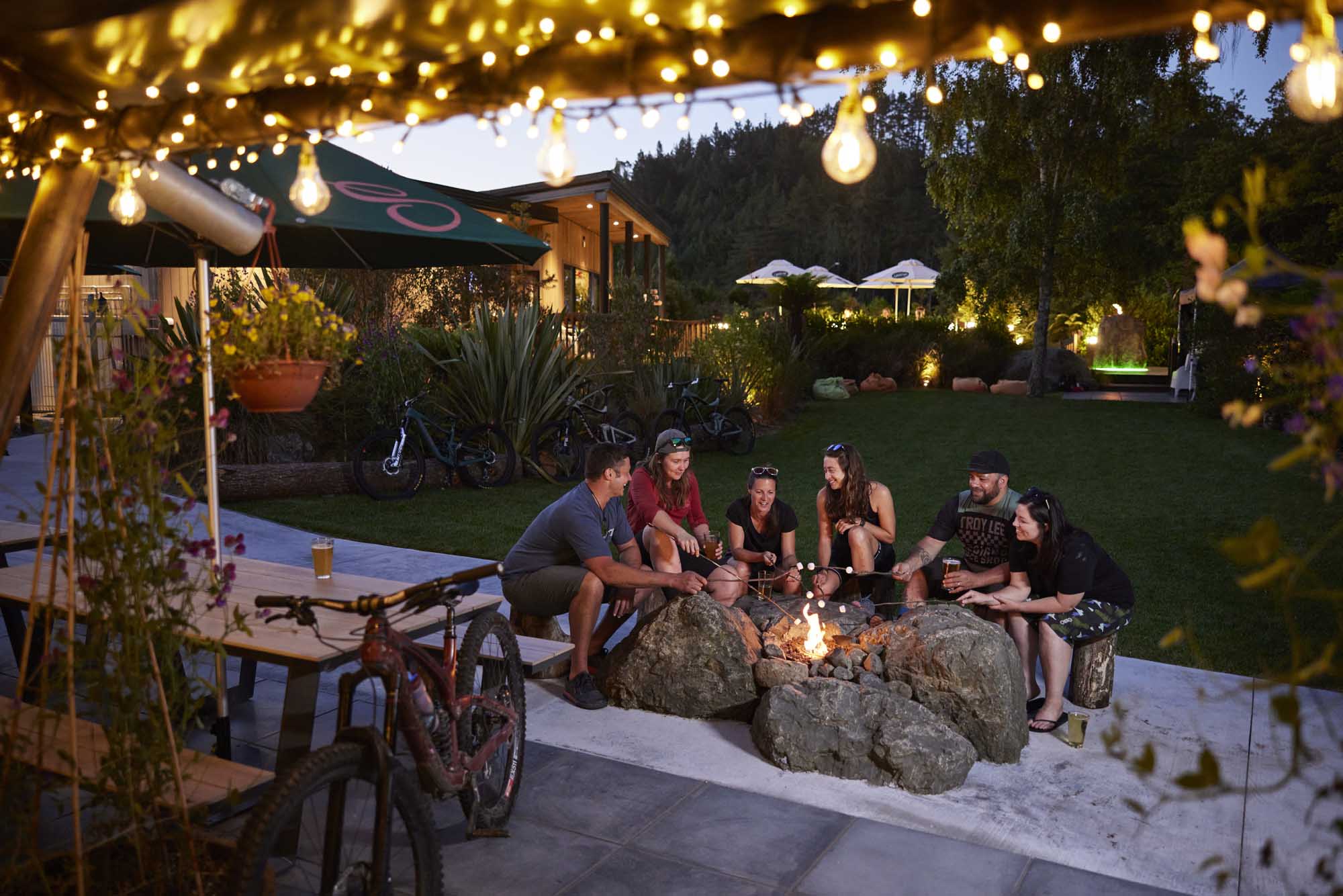 Have a bite to eat, play lawn games and enjoy the outdoor campfires, or unwind with a “Shinny Dip” in the cute foot hot tubs, free with any drinks purchase.