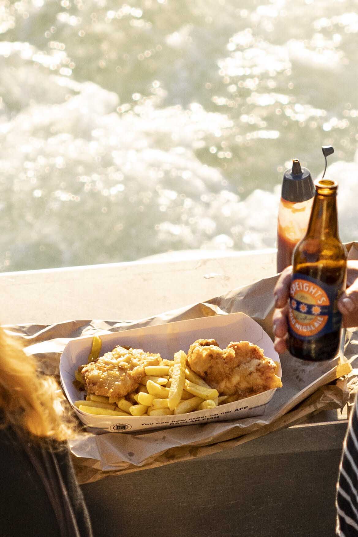 Enjoy freshly cooked fish and chips, paired with a cold beer or a glass of wine, as the sun sets over the horizon, the perfect way to start or end your day in Raglan.