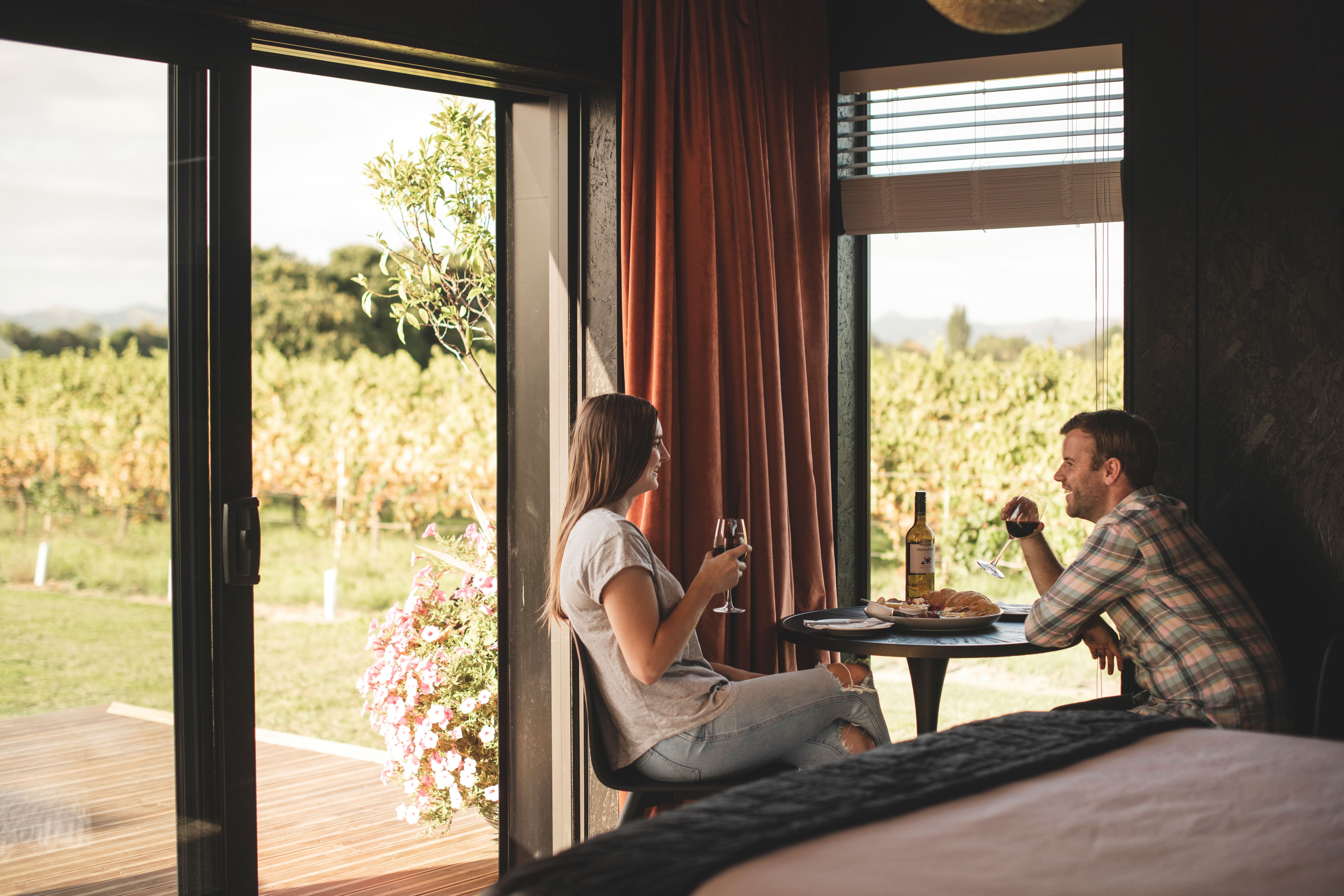 The ideal location next to The Matawhero winery’s beautiful Cellar Door, allows you to enjoy a platter and wine tasting on-site or on your own private deck.